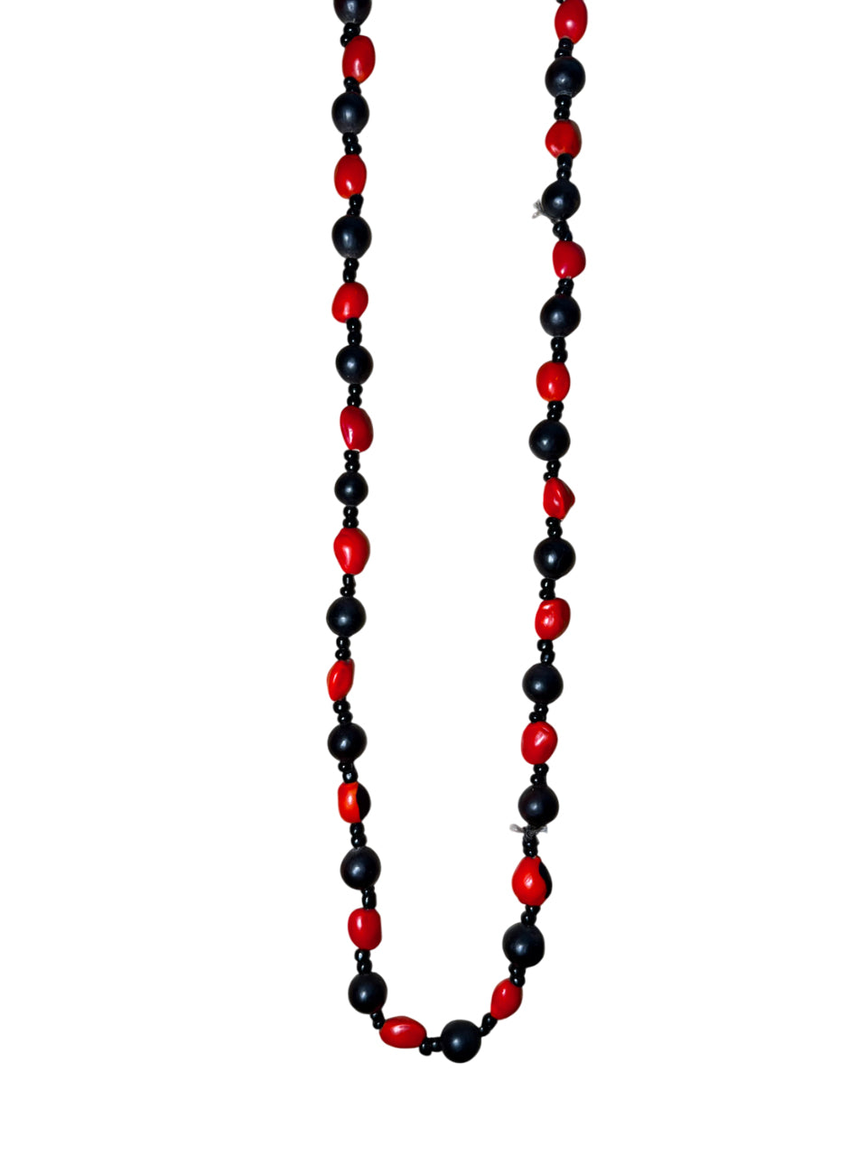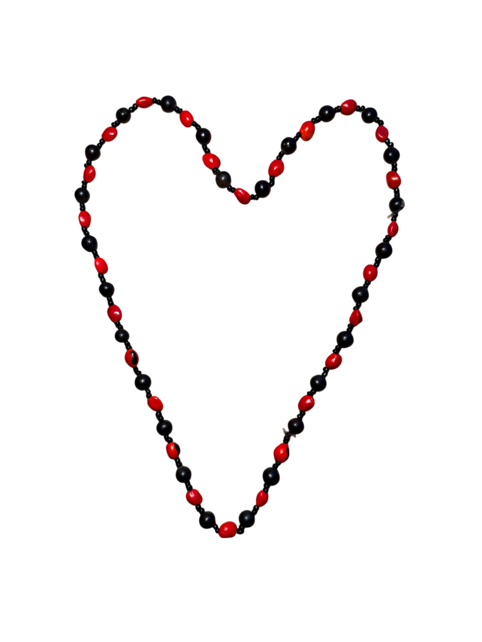 Este collar celebra la elegancia silenciosa del leopardo. Su combinación de semillas naturales de huayruro y choloque crean una danza de contrastes: fuerza y suavidad, instinto y calma.