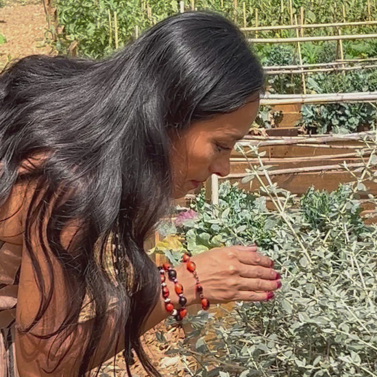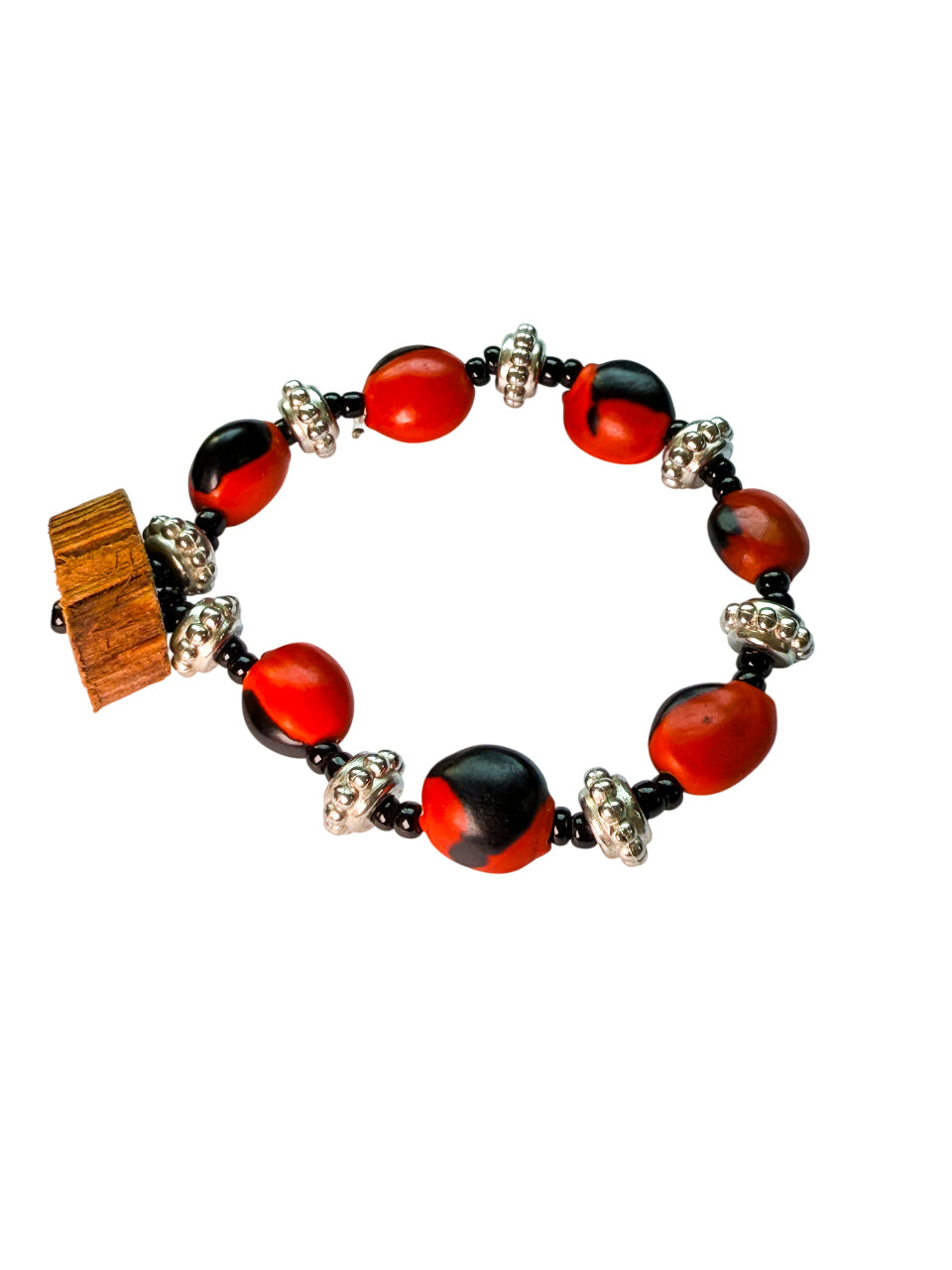 Pulsera confeccionada artesanalmente con semillas de huayruro que simbolizan protección y fortuna.