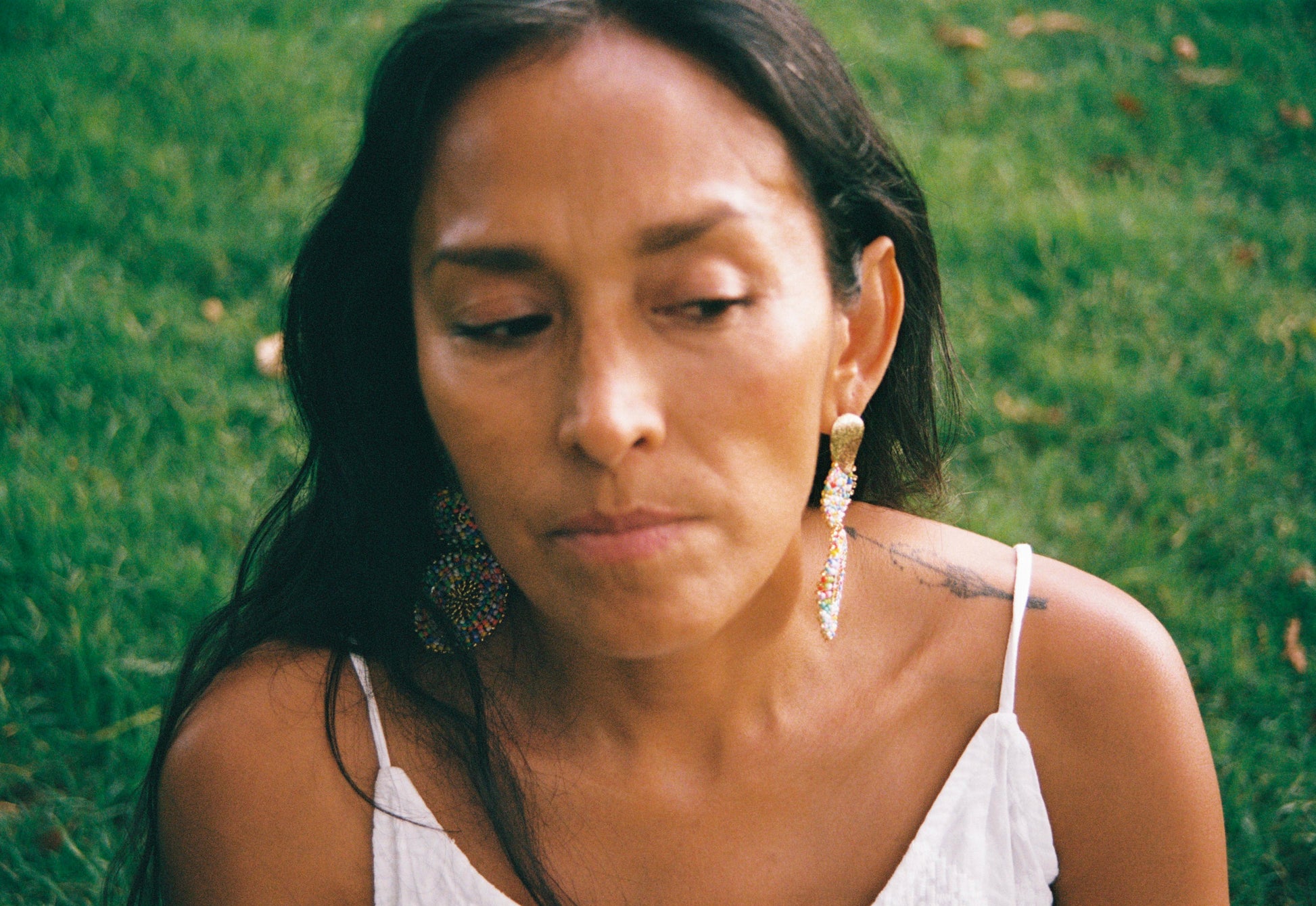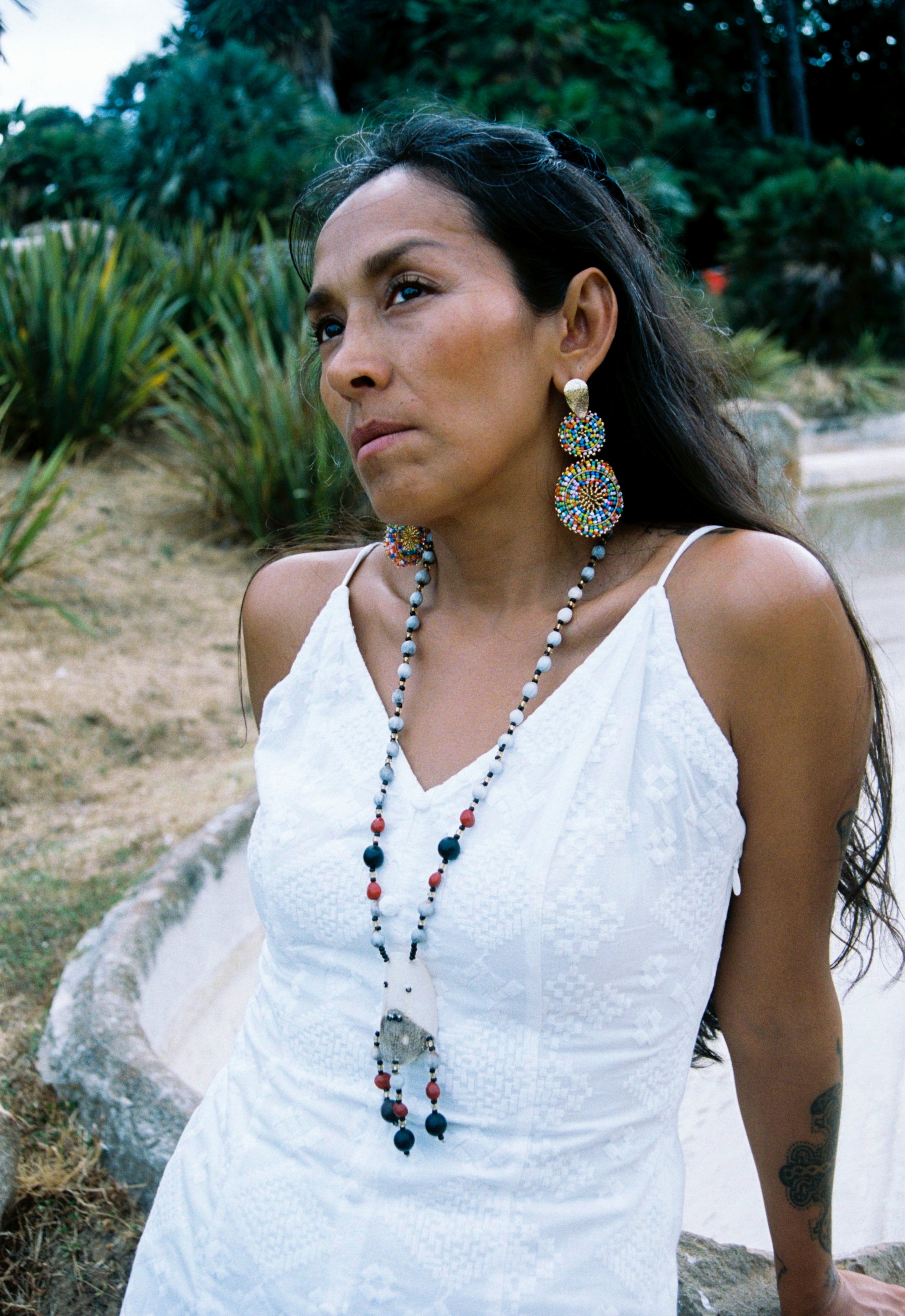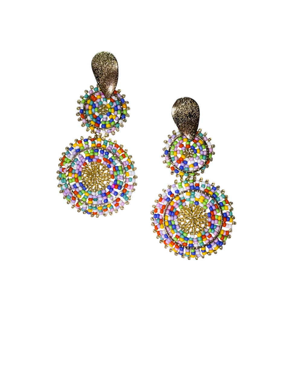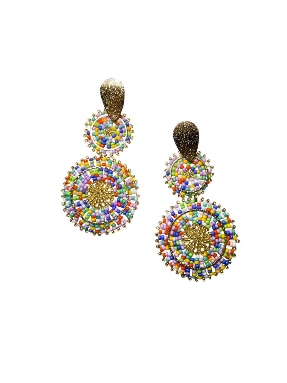 Pendientes de ensamblado artesanal con técnica de tejido circular de finas cuentas en más de 10 colores vibrantes.
